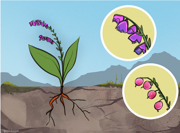 A plant that spreads near the kaski habitat. It is a purple, broad-leaved plant that, despite its beautiful name, is poisonous to humans when eaten. Kaskis love this plant and it is a great treat for them - especially the berries of the plant that come out in autumn. Those berries create a state similar to drunkenness. When this happens, kaskis can be seen doing even stupid things and staggering along the rocks.The plant spreads with Kaski and thrives especially on rocks in both bright and dry environments. Lamb’s daydream is also called “lamb nap” between kaskis.